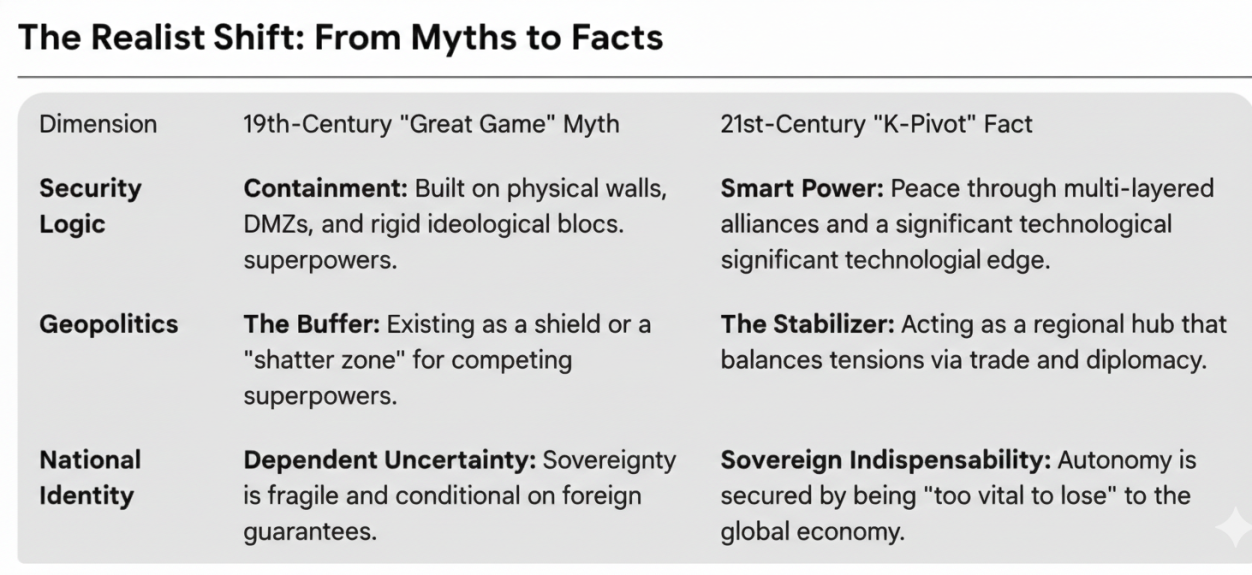 The Paradigm Shift: Intellectuals often fear that neutrality equals "defenselessness." The Active Stabilizer model proves the opposite. We move from being a passive "Buffer" (where giants collide) to an "Active Pivot" (where we manage the balance).